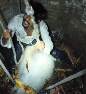 ✍️जगतपुर में बजरंग दल के कार्यकरता ने अपनी जान की परवाह किए बिना कुएं में गिरे सांड को निकाला✍️
