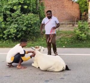 ✍️रायबरेली जिला जगतपुर विकासखंड क्षेत्र के अंतर्गत जगतपुर में बजरंग के कार्यकर्ताओं के एक अनोखी पहले देखने को मिली रोड पर घूम रहे आवारा जानवरो के गले में रेडियम बेल्ट डाल रहे हैं जिससे रात के समय रोड पर बैठे व रोड पर टहल रहे आवारा जानवरो को गले में ये रेडियम का बेल्ट डालने से रोड पर आने जाने वाले वाहनों के चालकों को दूर से ही ये रेडियम बेल्ट को जलते हुए दिखने लगेगा जिससे वह अपने वाहन को गति को धीमा करके उन्हें देख लेंगे जिससे आवारा जानवरो व वाहन चालक भी इस दुर्घटना से बाल बाल बच सकते हैं वही बजरंग दल के प्रखंड संयोजक शैलेश पटेल का कहना है की इस तरकीप से हम रोड पर टहल रहे आवारा जानवरो की दुर्घटना होने से बचाव होगा व रात के समय रोड पे बड़े वाहन के चलते ये दुर्घटनाएं ज्यादा होती है जानवरो के गले में रेडियम बेल्ट डालने से दुर्घटना से बचाया जा सकता है तथा वाहन चालक भी सुरक्षित रहेंगे। वही इस मौके पर बजरंग दल के प्रखंड मंत्री प्रनव सिंह, पदाधिकारी सुजल सिंह, गौ रक्षा प्रमुख गब्बर सिंह व अन्य बजरंग दल के कार्यकर्ता मौजूद रहे✍️