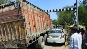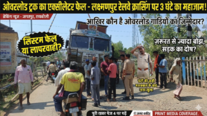 ✍️ क्षेत्र की व्यस्ततम लक्ष्मणपुर रेलवे क्रॉसिंग पर सोमवार को उस समय अफरा-तफरी मच गई, जब एक ओवरलोड ट्रक का एस्केलेटर (एक्सल) अचानक टूट गया।, जिसके चलते सड़क के दोनों ओर वाहनों की लंबी कतारें लग गईं। लगभग तीन घंटे तक आम राहगीर भीषण गर्मी और धूल के बीच फंसे रहे।