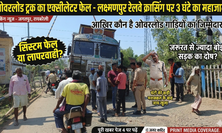 ✍️ओवरलोड ट्रक ने रोकी ‘राह’, लक्ष्मणपुर रेलवे क्रॉसिंग पर 3 घंटे लगा रहा भीषण जाम✍️