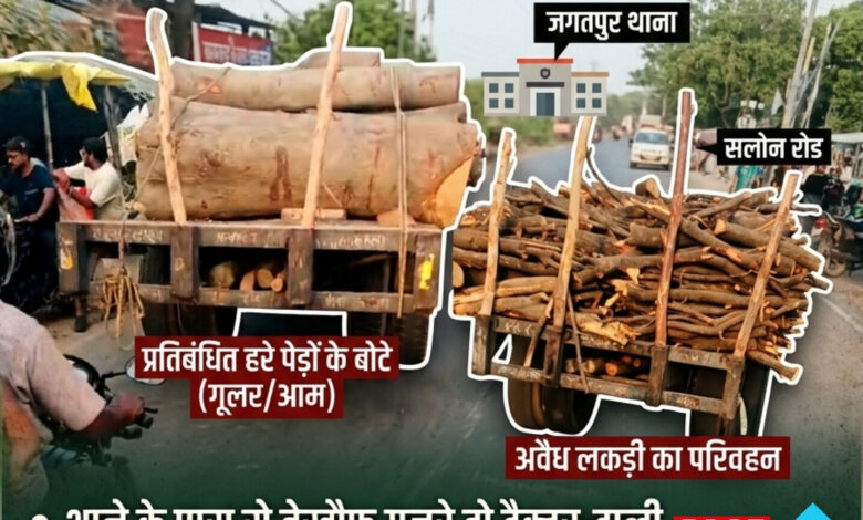 हैरानी की बात यह है कि जगतपुर चौराहे से थाने की दूरी मात्र चंद कदमों की है। इसी रास्ते से लकड़ी माफिया दो ट्रैक्टर-ट्रालियों में लदे प्रतिबंधित हरे पेड़ों के बोटों को लेकर बेखौफ होकर गुजरे। प्रत्यक्षदर्शियों के अनुसार, एक ट्रैक्टर में आम और दूसरे में गूलर की ताजी लकड़ी लदी हुई थी, जो जगतपुर के रायबरेली रोड से सलोन रोड की तरफ ले जाई जा रही थी। दिनदहाड़े लकड़ी ले जाने का यह वीडियो अब सोशल मीडिया पर तेजी से वायरल हो रहा है, जो स्थानीय प्रशासन की कार्यप्रणाली पर गंभीर सवाल खड़े कर रहा है।